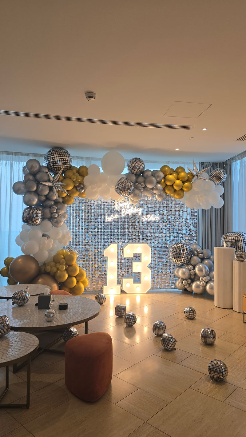 Bring a touch of luxury and sophistication to your event with our Gold and Silver Wall Backdrops, exclusively by Blue Bynzz Events. Whether you're hosting an elegant wedding, glamorous birthday, anniversary, corporate gala, or red-carpet event, our shimmering backdrops create a dazzling setting that enhances any venue.
