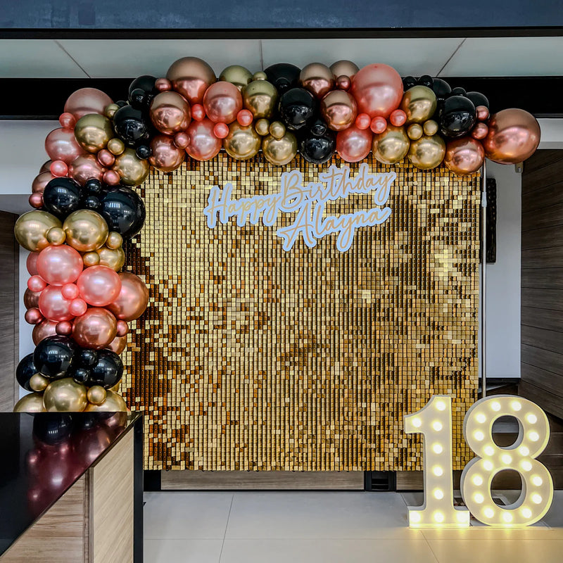 - ✨ Gold Sequin Wall – Radiates warmth and elegance, perfect for photo booths and stage backdrops.