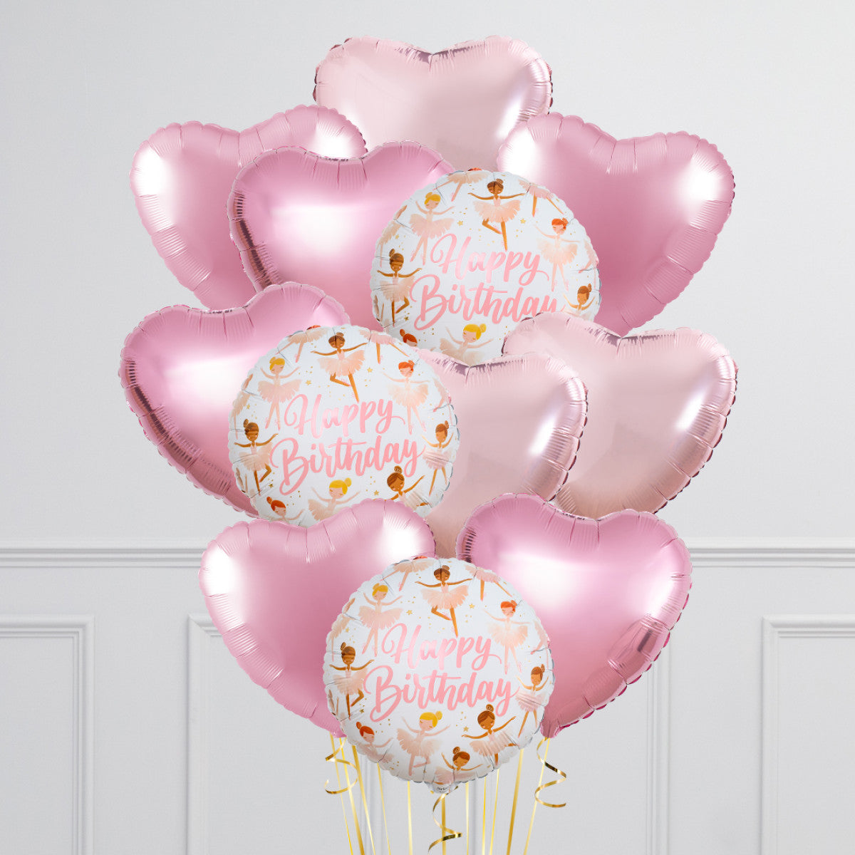 Birthday Ballerina Hearts Inflated Foil Balloon Bunch – Baby Pink Perfection